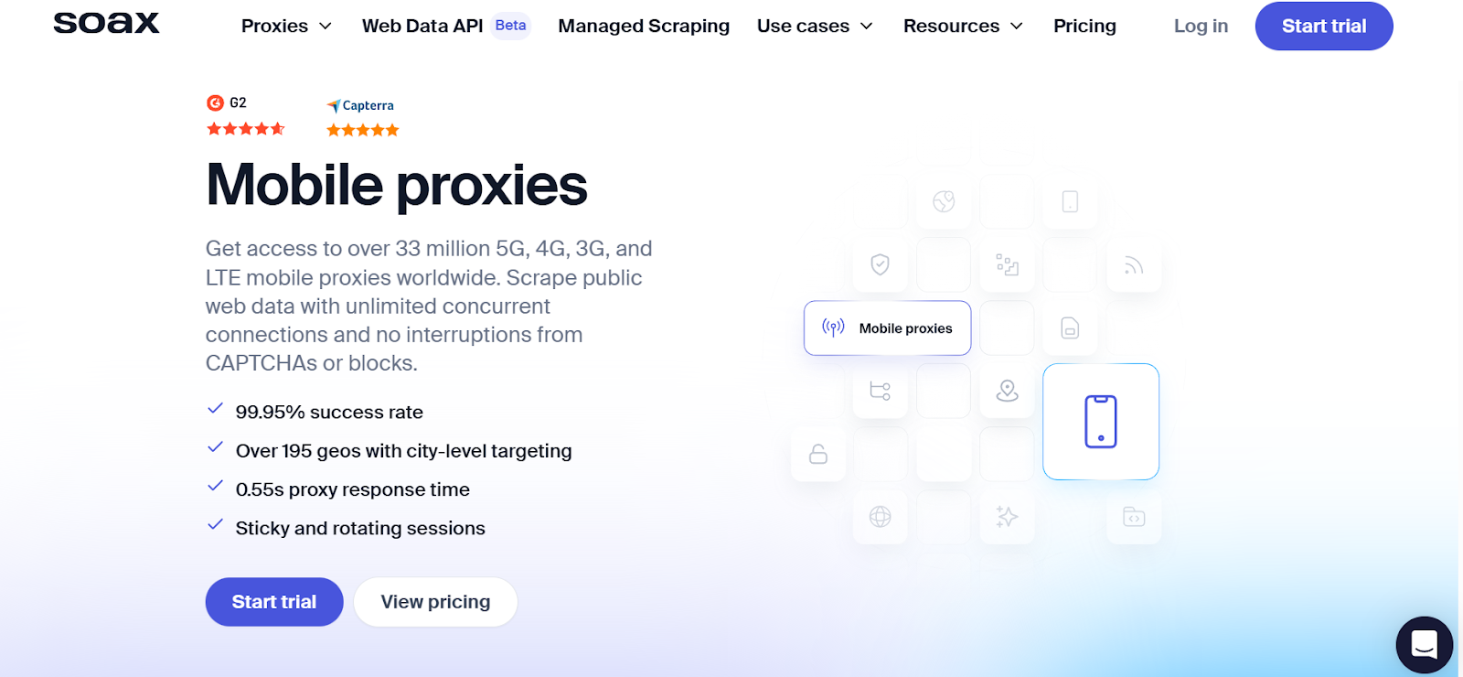 - Reliable 3G/4G/5G mobile proxies